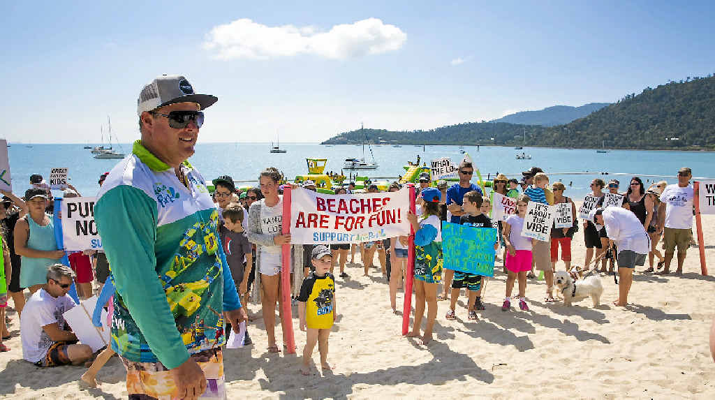 On Sunday, about 300 members of the community rallied on the beach in support of the Aqua Park and Mr Ford.