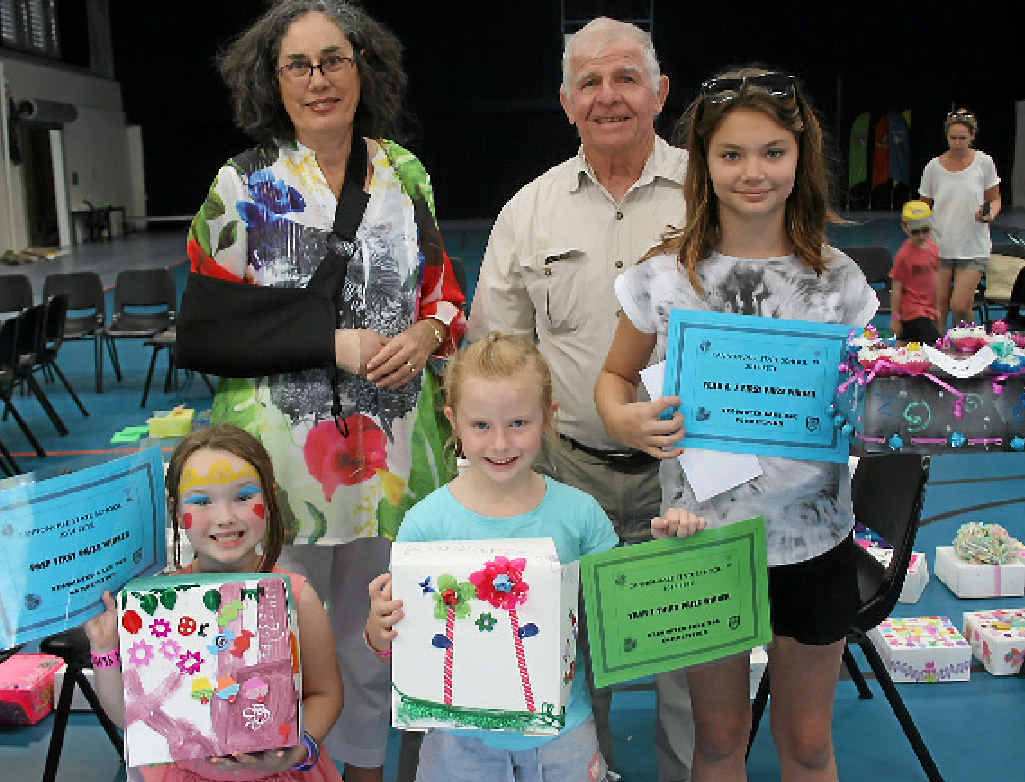 Former Cannonvale State School deputy principal Merewyn Wright and Whitsunday regional councillor John Atkinson judged the school's annual cake box competition.