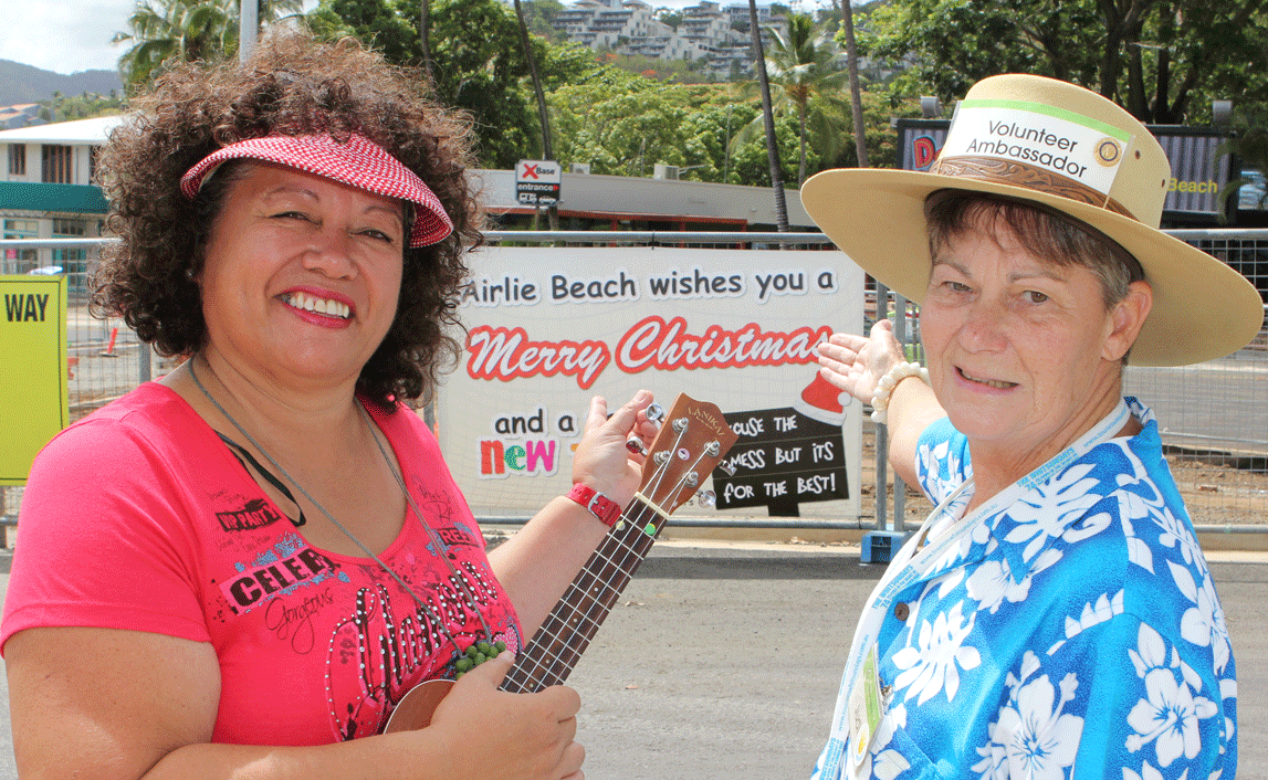 Local ukulele player Jeni Borellini has written a special Whitsunday song, which she is now performing at the markets and hopes to sing as a welcome to cruise ship passengers, both at the marina and on the buses that transport them in and out of town.