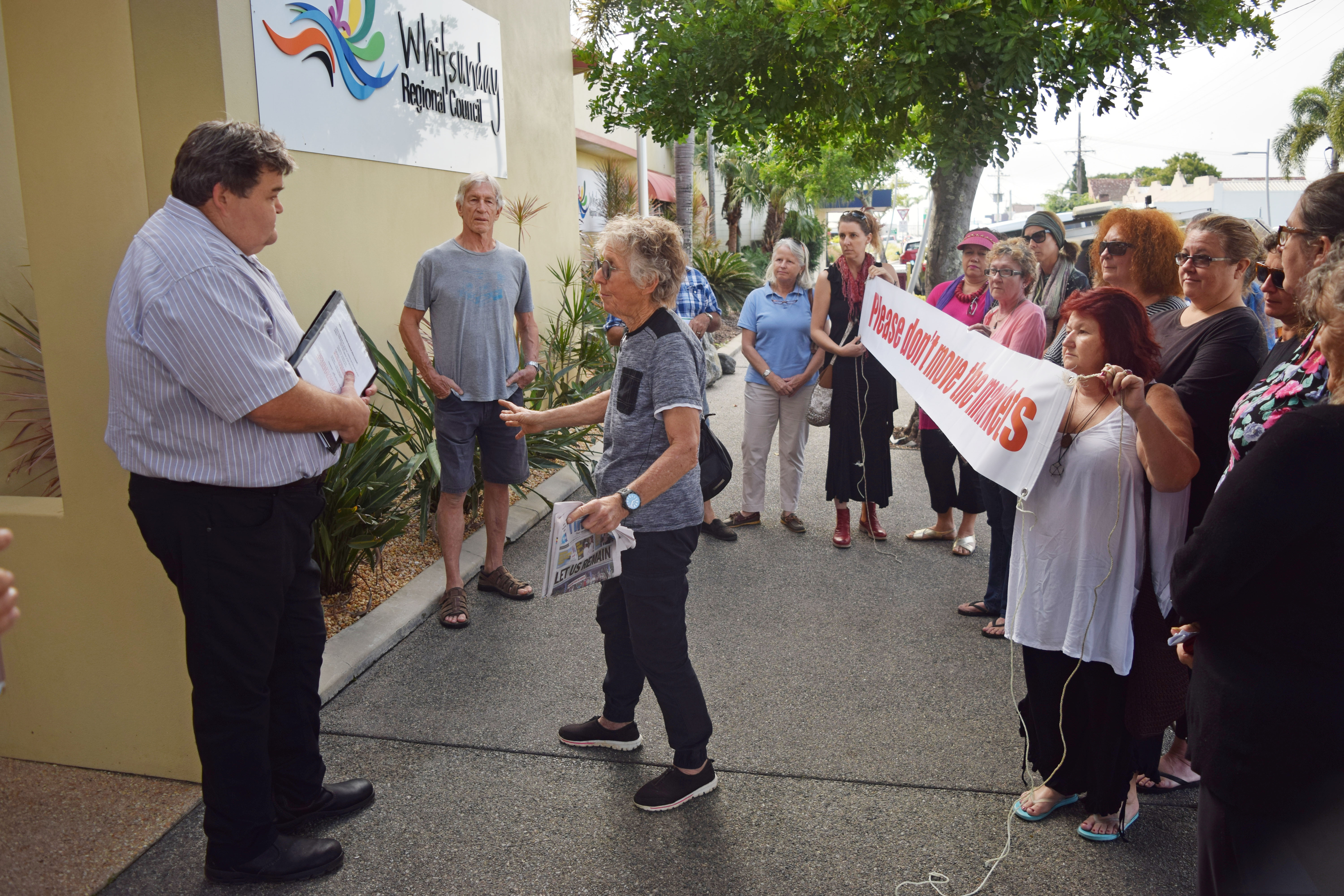 The stall holders were there to present Whitsunday Regional Council with a petition to retain the market in its current position on the foreshore.
