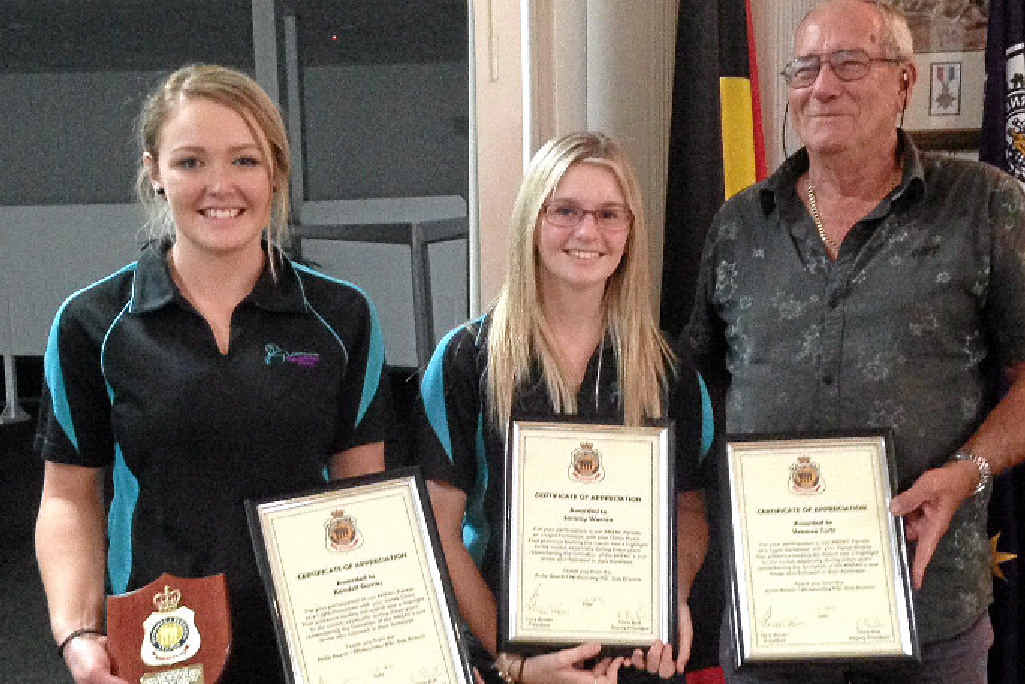 Kendall Davies and Sammy Warren attended the RSL's monthly meeting, where they each received a certificate of appreciation and were handed a plaque for the Equestrian Society.