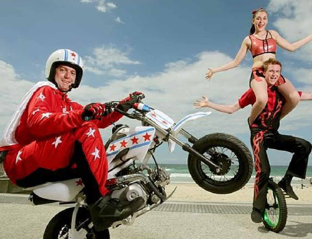 For the bigger kids and young at heart, Epic Darren will fire up his motorbike and jump through rings of fire in Australia's funniest anti-stuntman show.